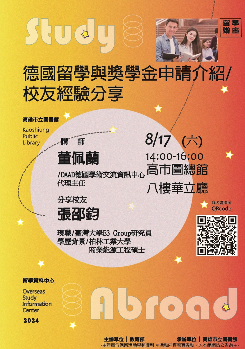 ✈2024/08/17(六)【德國留學與獎學金申請介紹/校友經驗分享】
